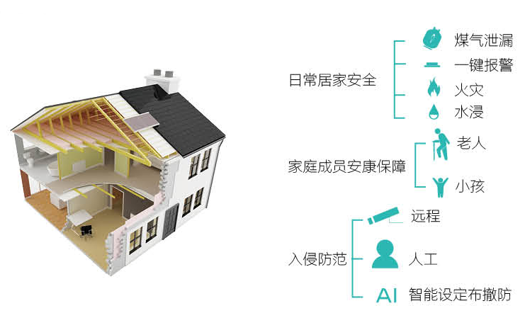 面向個人家庭,借助現代網絡通訊及信息科學技術,利用先進的物聯網傳感技術、智能視覺技術,結合完善的人防體系和專業的人防團隊,實現人、技防深度結合,實現實時視頻、可燃氣體探測、環境探測、入侵報警、緊急求助等功能,為客戶提供優質和全面的居家安全、助老及健康醫療類的產品和服務。