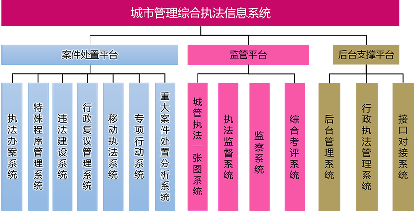 金鵬智慧執(zhí)法系統(tǒng)是城市管理信息化的樞紐,能夠?yàn)楦鲗I(yè)子系統(tǒng)基本信息和分析數(shù)據(jù)提供一個交換、匯總、分析、加工的整合平臺。充分運(yùn)用物聯(lián)網(wǎng)、云計算、視頻監(jiān)控技術(shù)、數(shù)據(jù)分析與挖掘等先進(jìn)技術(shù),可為城市綜合執(zhí)法提供全方位信息支撐,根據(jù)不同的功能需求,系統(tǒng)可分為:一級辦案、二級監(jiān)管、三級指揮和四級支撐。